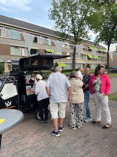 De buurtborrel was deze keer na de zomervakantie, op 6 september, georganiseerd, i.p.v. in juli, zoals de afgelopen twee jaar. Deze vond plaats op De Savornin Lohmanlaan 16-18, van 17-20 uur. De weergoden waren ons dit jaar goed gezind, met een heerlijke temperatuur en droog weer, wat de gezelligheid bevorderde. 55 buurtgenoten en een aantal kinderen waren aanwezig en genoten van de heerlijke hapjes, geregeld en verzorgd door de buurtborrelcommissie. Als verrassing kwam er een ijstuktuk van IJsvanoranje uit Baarn, waar iedereen een heerlijk ijsje kon halen.
